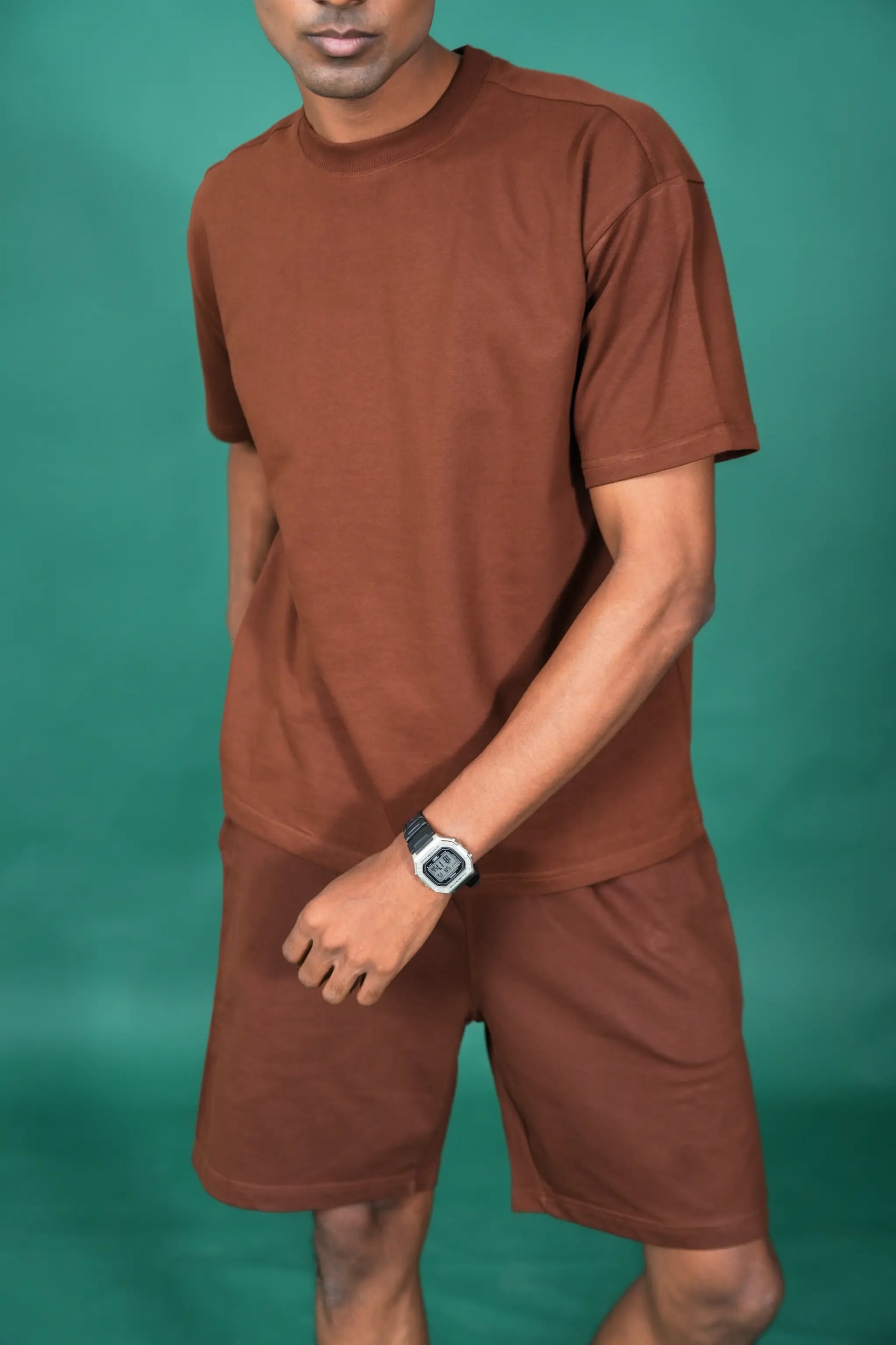 Brown unisex relaxed fit shorts, a staple for any cotton loungewear.