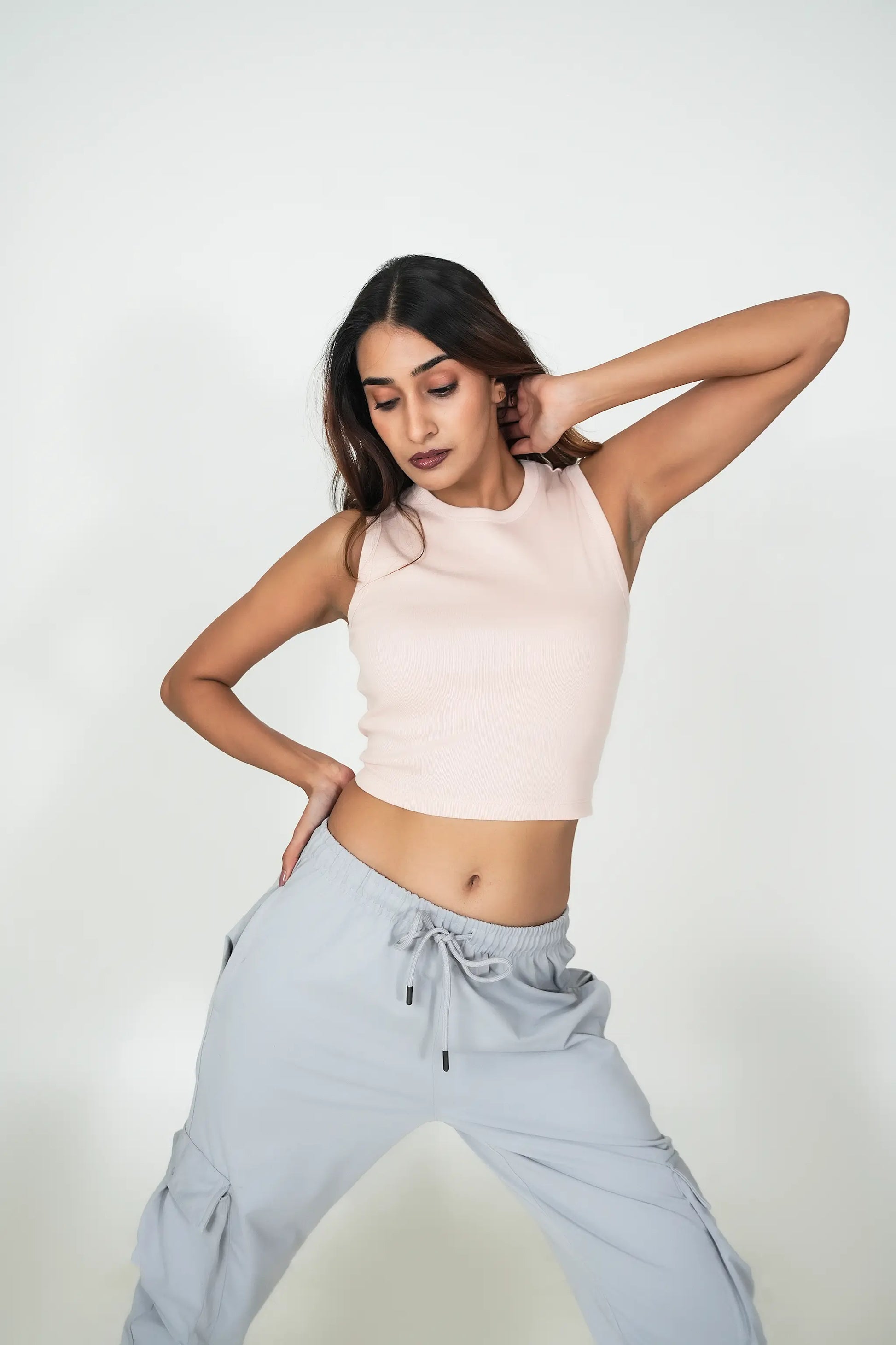 Pale Rose women’s ribbed tank top, perfect for individual loungewear.