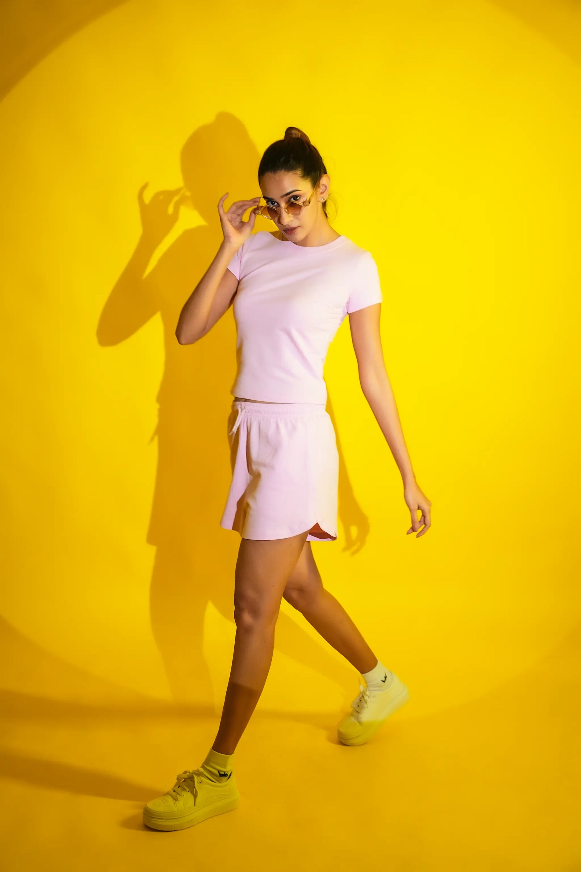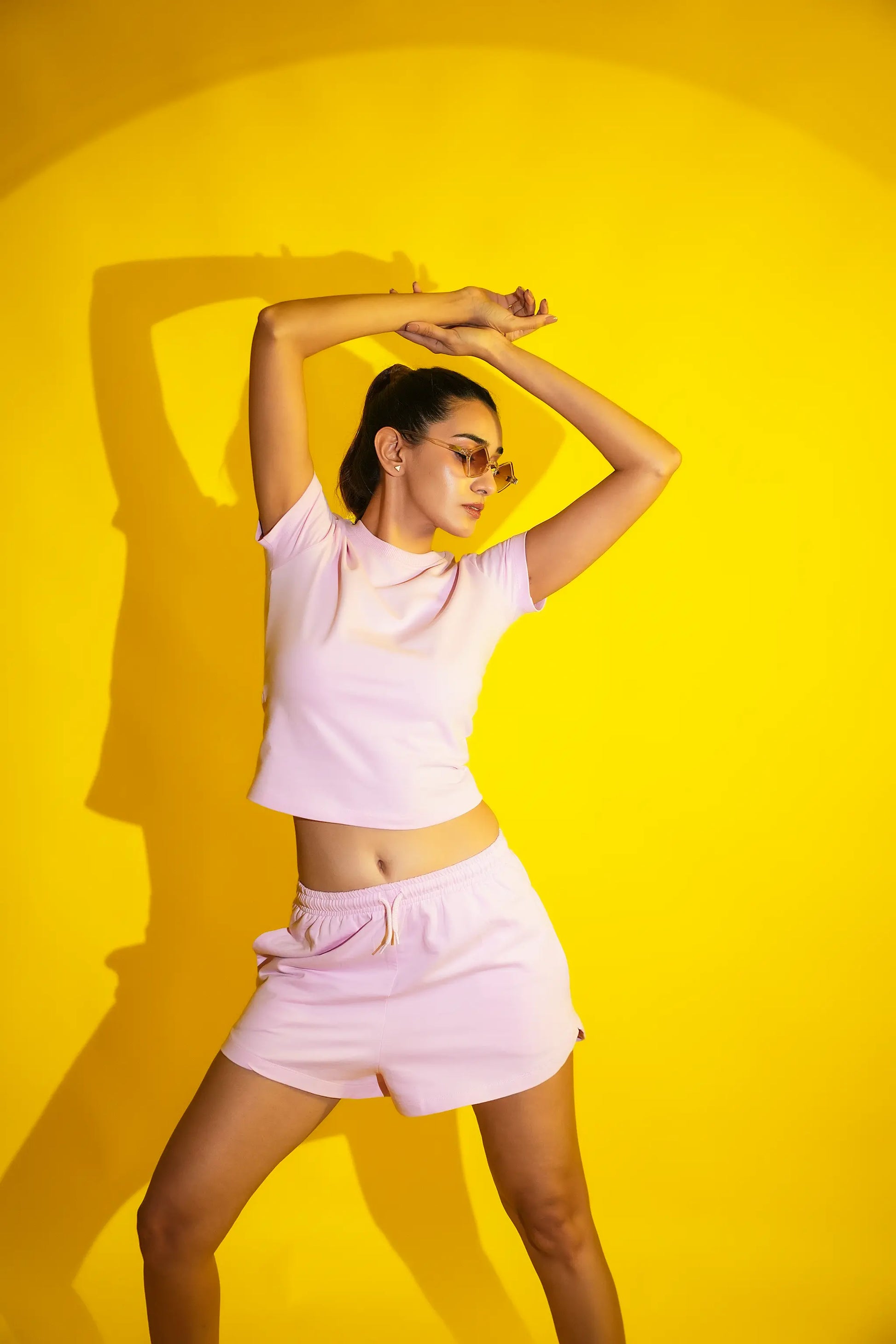Pink snug fit baby tee, comfortable cotton loungewear for women.